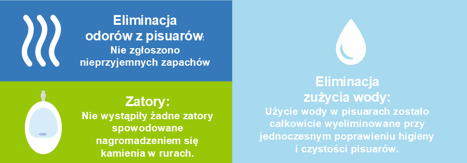 „Terminal 3 oszczędza rocznie29 295 000 litrów wody, zatory występują o 85% rzadziej, a konserwacja jest wymagana co kwartał, a nie co miesiąc. Koszty eksploatacji pisuarów zostały prawie o połowę zmniejszone, a pozytywne opinie klientów na temat udogodnień wzrosły.”