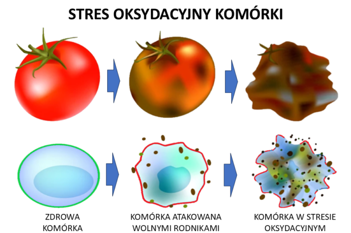 Wolne rodniki tlenowe to niestabilne cząsteczki, które powstają w organizmach żywych podczas naturalnych procesów metabolicznych. Często są efektem zewnętrznych czynników, takich jak zanieczyszczenie środowiska, promieniowanie UV czy stosowanie związków utleniających. Fizjologicznym i najbardziej korzystnym dla nas zjawiskiem jest, gdy większość atomów ma parzystą liczbę elektronów. Jeśli część z nich nie ma pary dąży do jej uzyskania, często odbierając elektrony innym atomom w cząsteczkach powodując utlenianie. Ich nadmiar prowadzi do stresu oksydacyjnego, który może uszkadzać komórki, powodować stany zapalne oraz przyspieszać procesy starzeniowe zarówno u ludzi, jak i u zwierząt czy roślin.