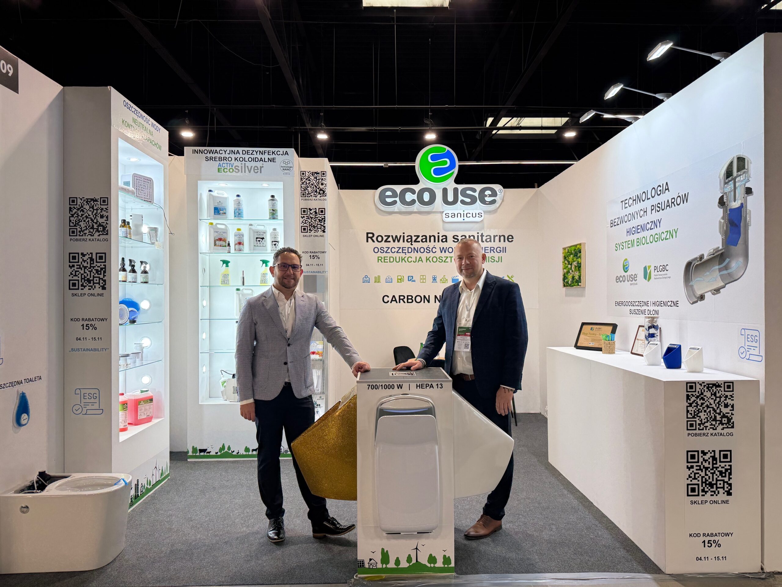 EcoUse, jako firma zaangażowana w promowanie oszczędności wody za pośrednictwem pisuaru bezwodnego P1.1 EcoUse, zaprezentowała swoje najnowsze osiągnięcia w dziedzinie ekologicznych rozwiązań sanitarnych. Na szczególną uwagę zasługiwała prezentacja toalety W1 EcoUse, która redukuje zużycie wody o połowę. To innowacyjne urządzenie jest odpowiedzią na rosnące potrzeby rynku w zakresie efektywnego zarządzania zasobami wodnymi, co jest kluczowym elementem strategii zrównoważonego rozwoju.